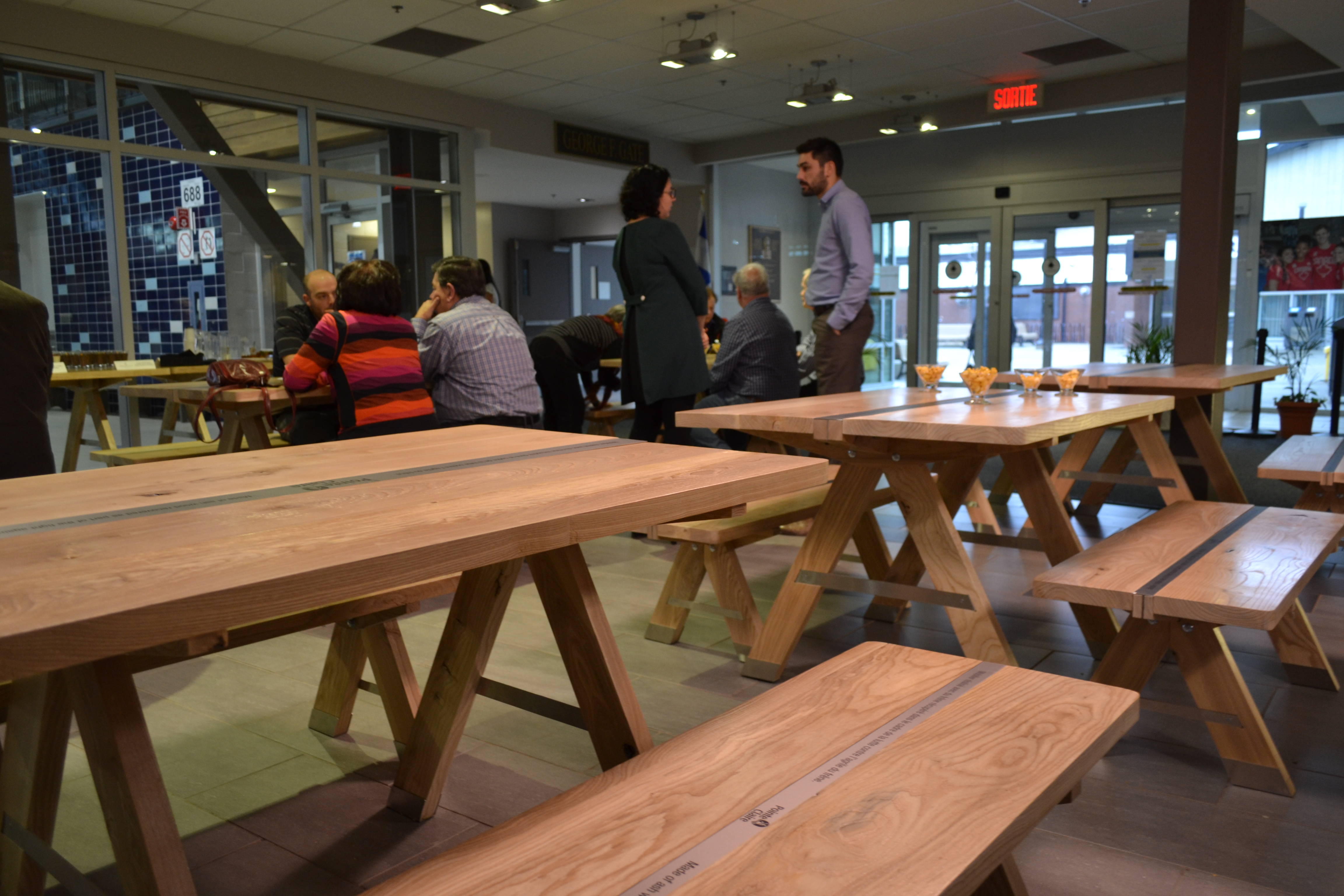 Le centre aquatique de Pointe-Claire s’est récemment doté de 20 nouvelles tables et 64 nouveaux bancs fabriqués par des jeunes en réinsertion sociale à partir de bois de frênes abattus l’an dernier. Ces arbres étaient non qualifiés pour le programme de prévention contre l’agrile du frêne.