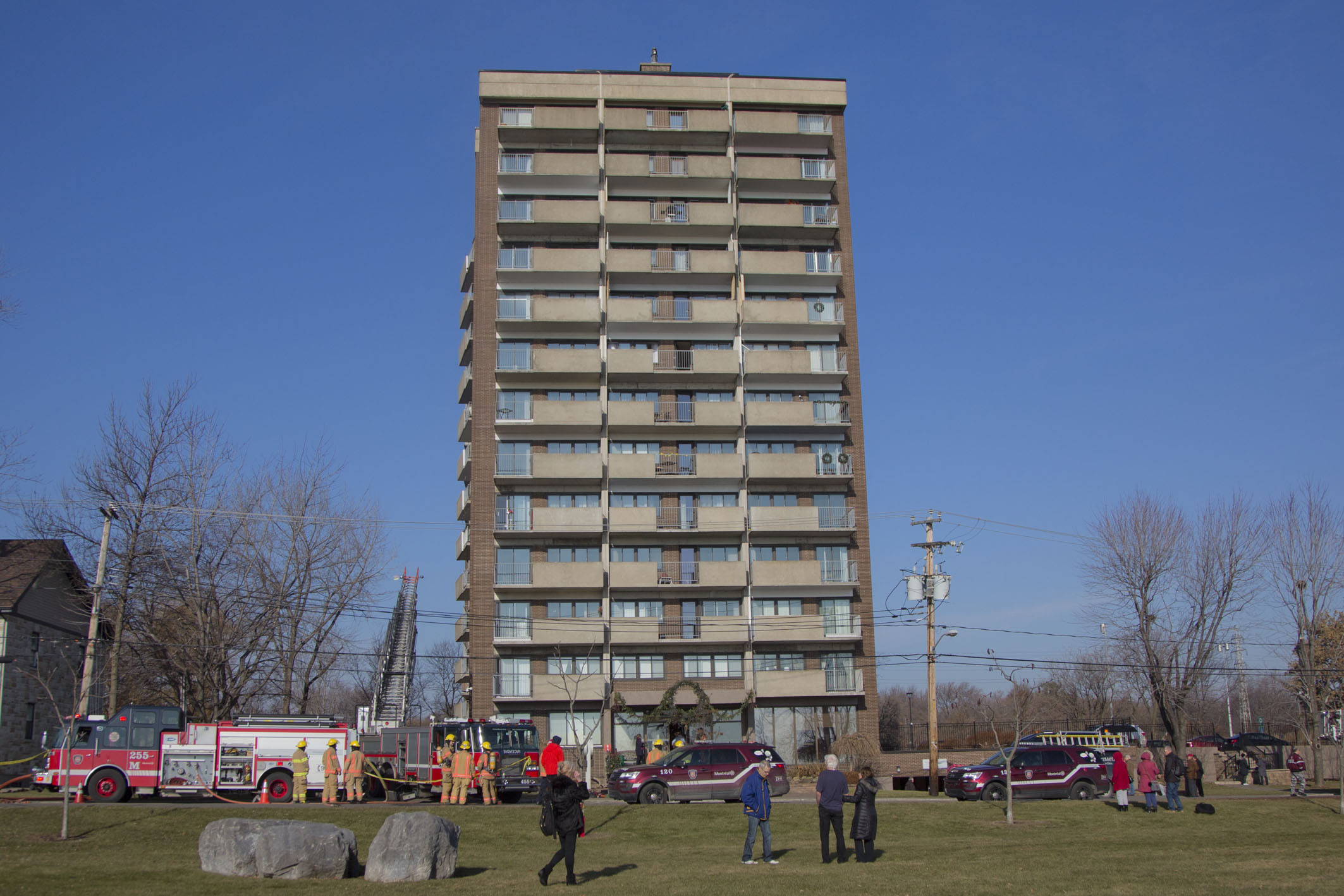 Une personne est à la rue après l’incendie de son logement dans une tour du chemin Bord-du-Lac, à Pointe-Claire, lundi matin. Personne n’a toutefois été blessé.