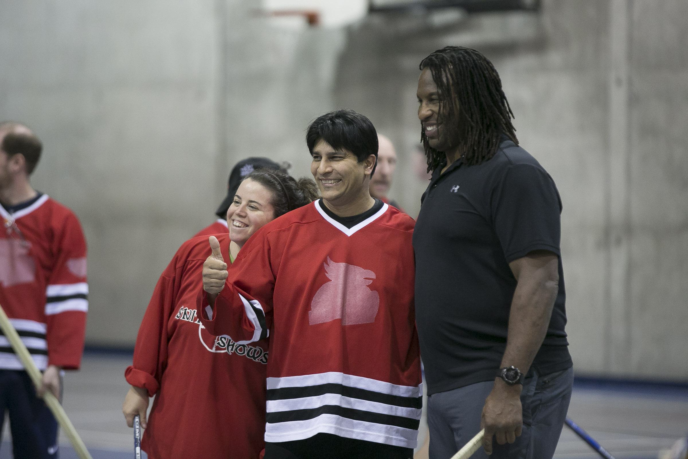 Une séance de réseautage, lors de laquelle le public a pu profiter d’une séance photo avec M. Laraque, a précédé le tournoi de hockey.