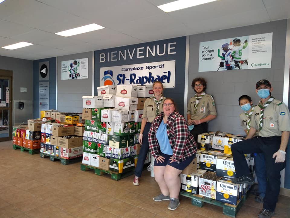 Chaque printemps, le Groupe scout 2e Saint-Raphaël effectue une collecte de canettes et bouteilles consignées pour pouvoir envoyer ses membres en camp d’été. Devant l’improbabilité que des camps se tiennent cet été, le groupe avait décidé de verser l’argent à Action jeunesse de l’Ouest-de-l’Île (AJOI). Un chèque d’une valeur de près de 2060$ a été remis à l’organisme de travail de rue le 7 juin. L’argent permettra de couvrir certaines dépenses imprévues en raison de la pandémie, telles que l’achat de masques et produits désinfectants.
