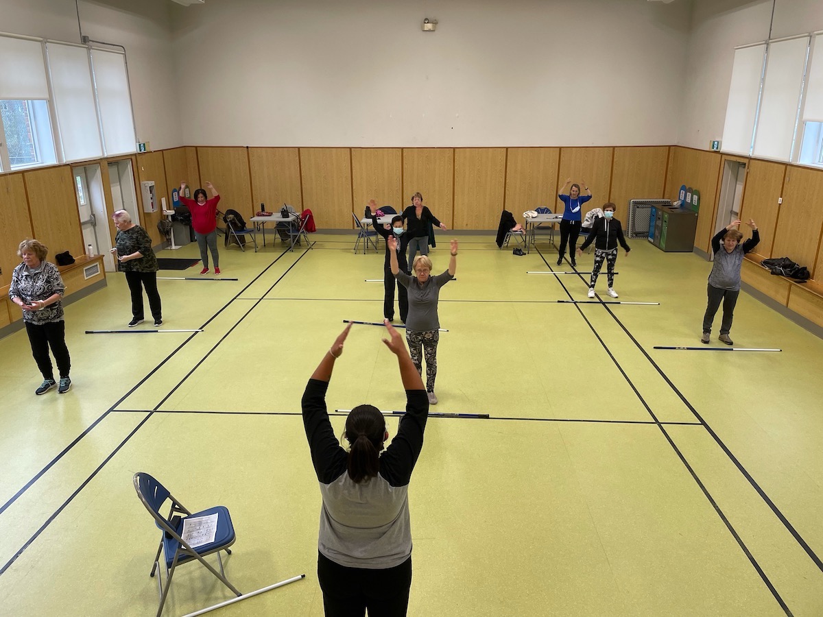 Les lundis et jeudis, elle rejoint le groupe de marche pour 1 heure. L’activité se fait en deux groupes, et Martine, «qui adore ça», se retrouve dans le groupe des plus rapides, habituée à se promener pendant une heure chaque jour. L’autre groupe, plus lent, prend un autre chemin et on y retrouve les personnes plus âgées, dont une courageuse nonagénaire (90 ans). Avec la Covid, chaque participante apporte son bâton de marche personnel.