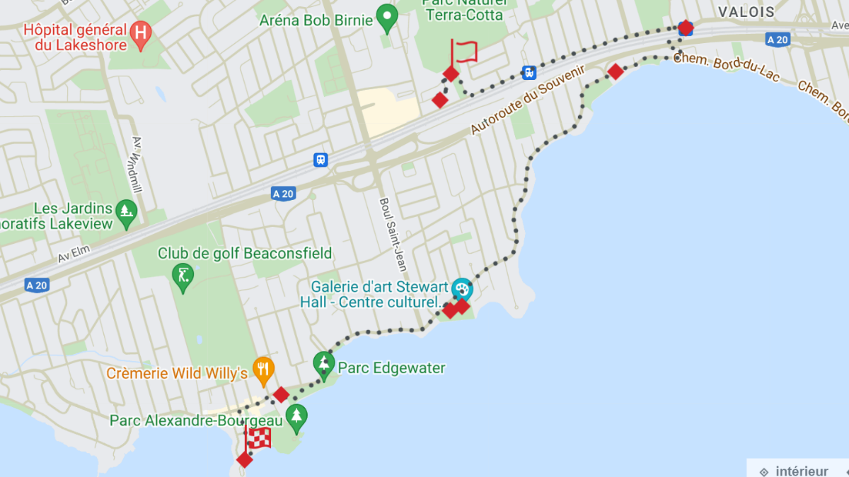 Art Public Montréal concocte régulièrement des circuits qui permettent de se balader en ville en découvrant des œuvres d’art. Pour ce mini-circuit de Pointe-Claire, l’organisme a choisi de mettre en valeur huit œuvres réparties dans des parcs et des rues.