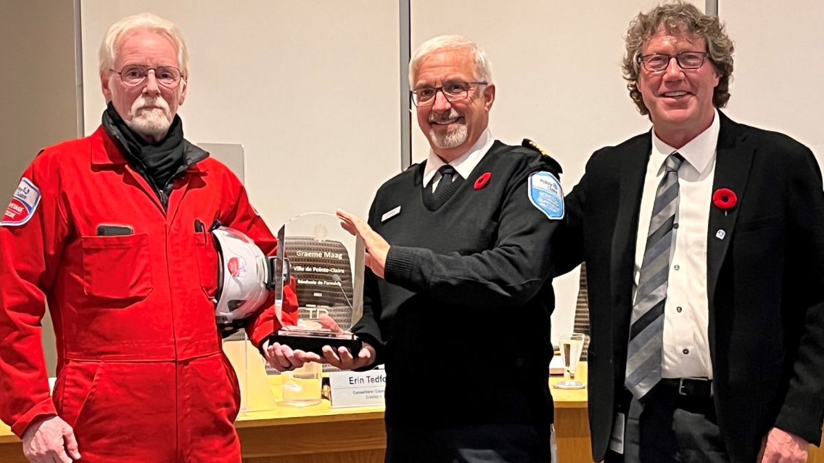 Le dévouement de Graeme Maag au sein de l’Unité de sauvetage volontaire de Pointe-Claire a été souligné de façon fort spectaculaire. En plus de recevoir le Prix du bénévole de l’année lors du Gala reconnaissance de TPQuébec 2022, il était l’invité spécial des élus de Pointe-Claire lors de l’assemblée mensuelle du conseil municipal du 8 novembre dernier.