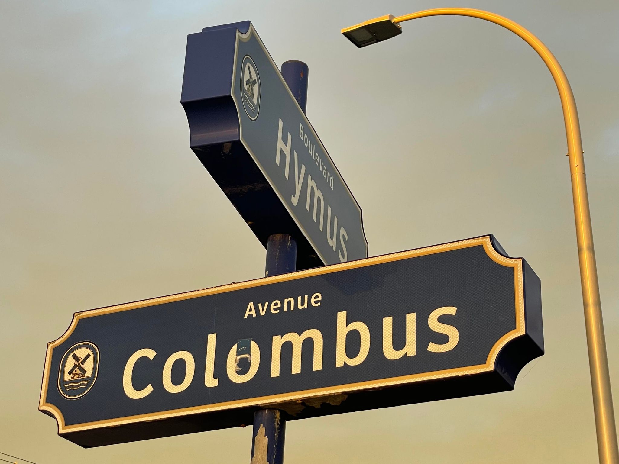 En consultant le site Web de la Commission de toponymie du Québec, on apprend que l’avenue Columbus, à Pointe-Claire, a été officiellement désignée comme telle en septembre 1997. Cependant, la Commission ne confirme pas que le toponyme Columbus désigne en fait l’explorateur italien du XVe Siècle.