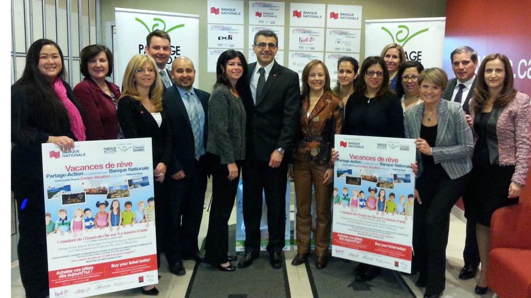 Caroline Tison, directrice générale de Partage-Action de l’Ouest-de-l’Île, remercie tous les participants: «Nous sommes très reconnaissants à la Banque Nationale pour sa commandite du concours Vacances de rêve, car ce programme nous a permis d’amasser près de 740 000$ depuis 2009. Je tiens également à remercier de leur précieux soutien tous les directeurs de succursales de l’Ouest-de-l’Île ainsi que leurs équipes et leurs clients et toutes les personnes qui ont acheté des billets.»