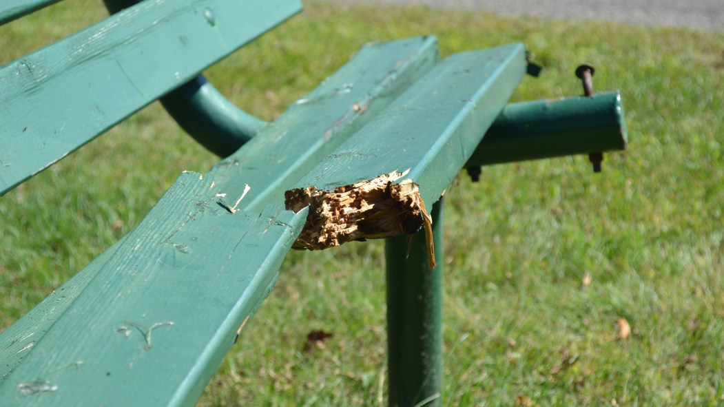 Lors du passage de TC Media sur les lieux mardi, plusieurs petits sachets de plastique vides gisaient sur la pelouse et deux bancs de parc étaient mal en point avec une planche manquante et une autre cassée.