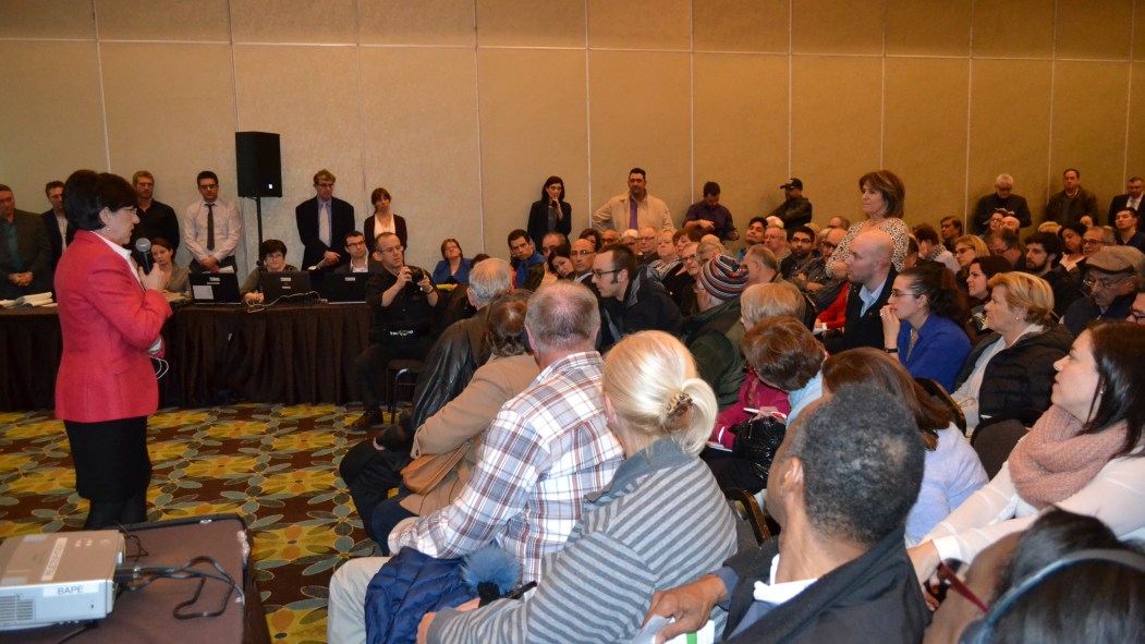 Le 30 mars au soir, il y avait une foule considérable dans la salle de conférence Champagne du Holiday Inn à Pointe-Claire lors d’une soirée d’information organisée par le BAPE par rapport au projet contesté.