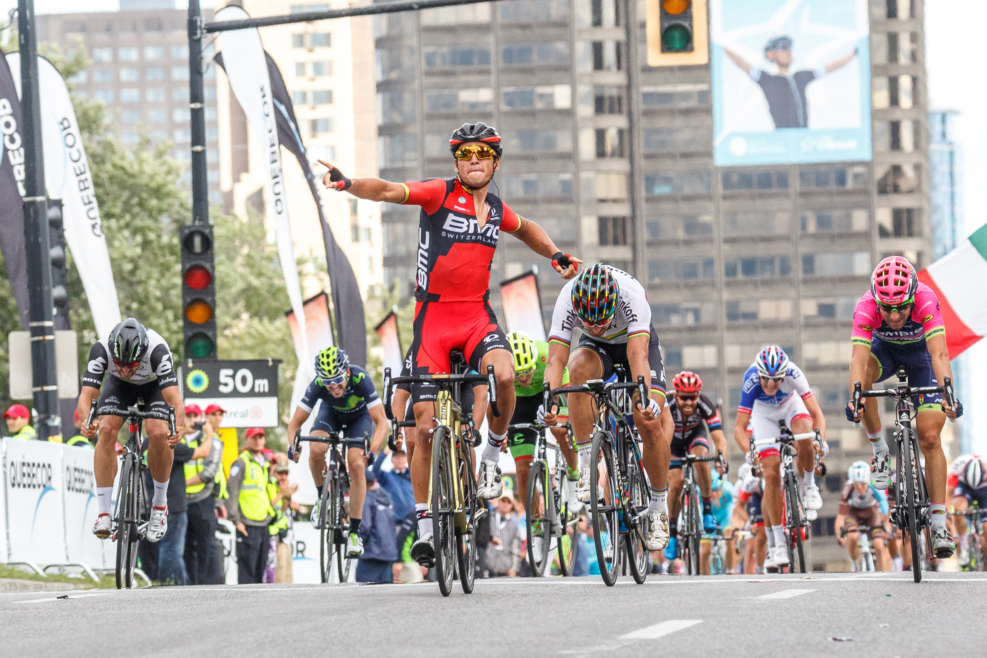 Peter Sagan avait remporté la pole position le 9 septembre lors du Grand prix cycliste de Québec. Guillaume Boivin, le Canadien au meilleur résultat, était alors arrivé en 17e place.