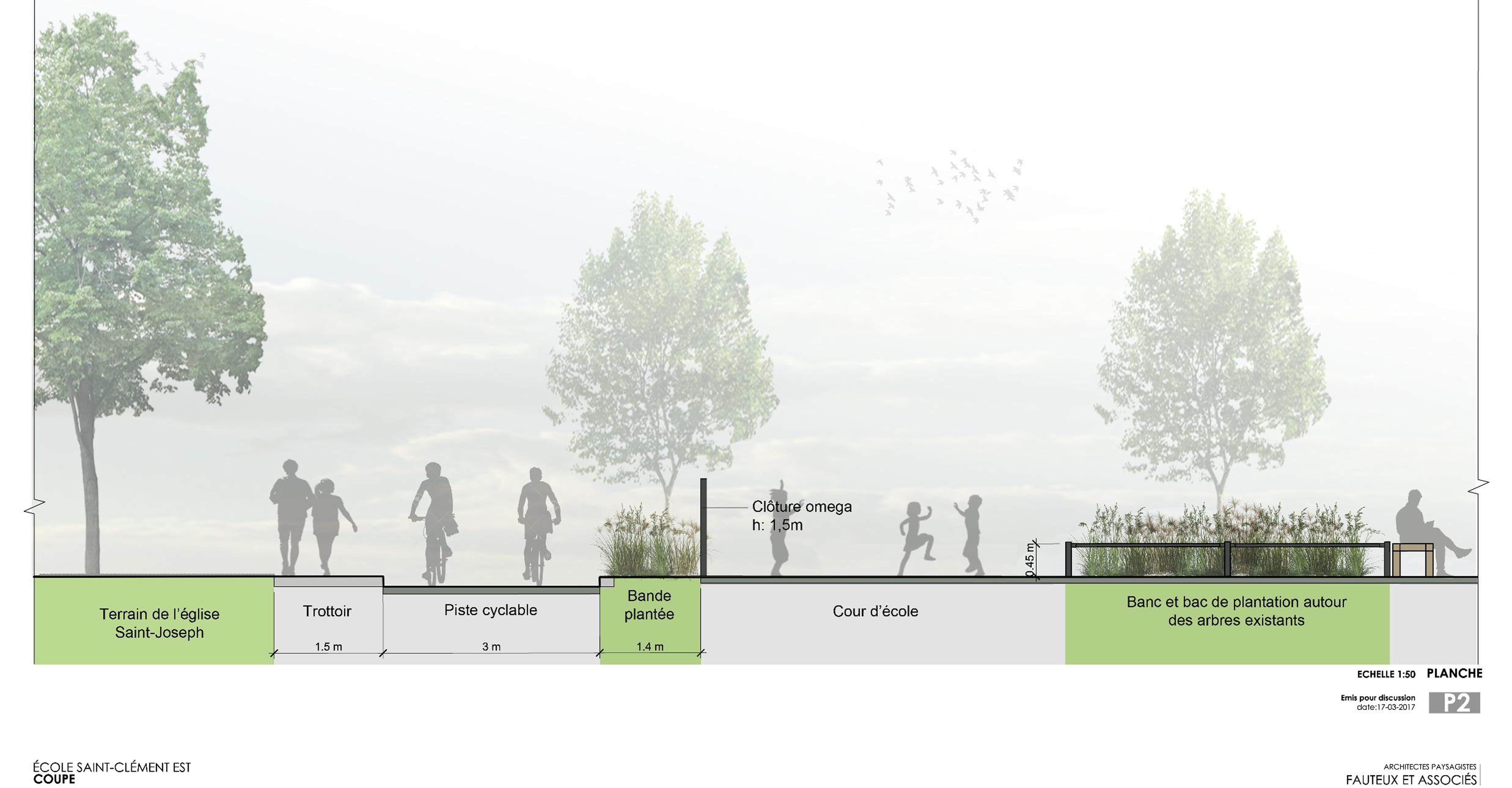 Grâce à ce projet, la cour de l’établissement primaire sera 40 % plus grande. L’école empiétera sur environ la moitié de la rue. La clôture actuelle sera démantelée pour en installer une nouvelle de 1,5 mètre entre la future cour et le lien cyclable.