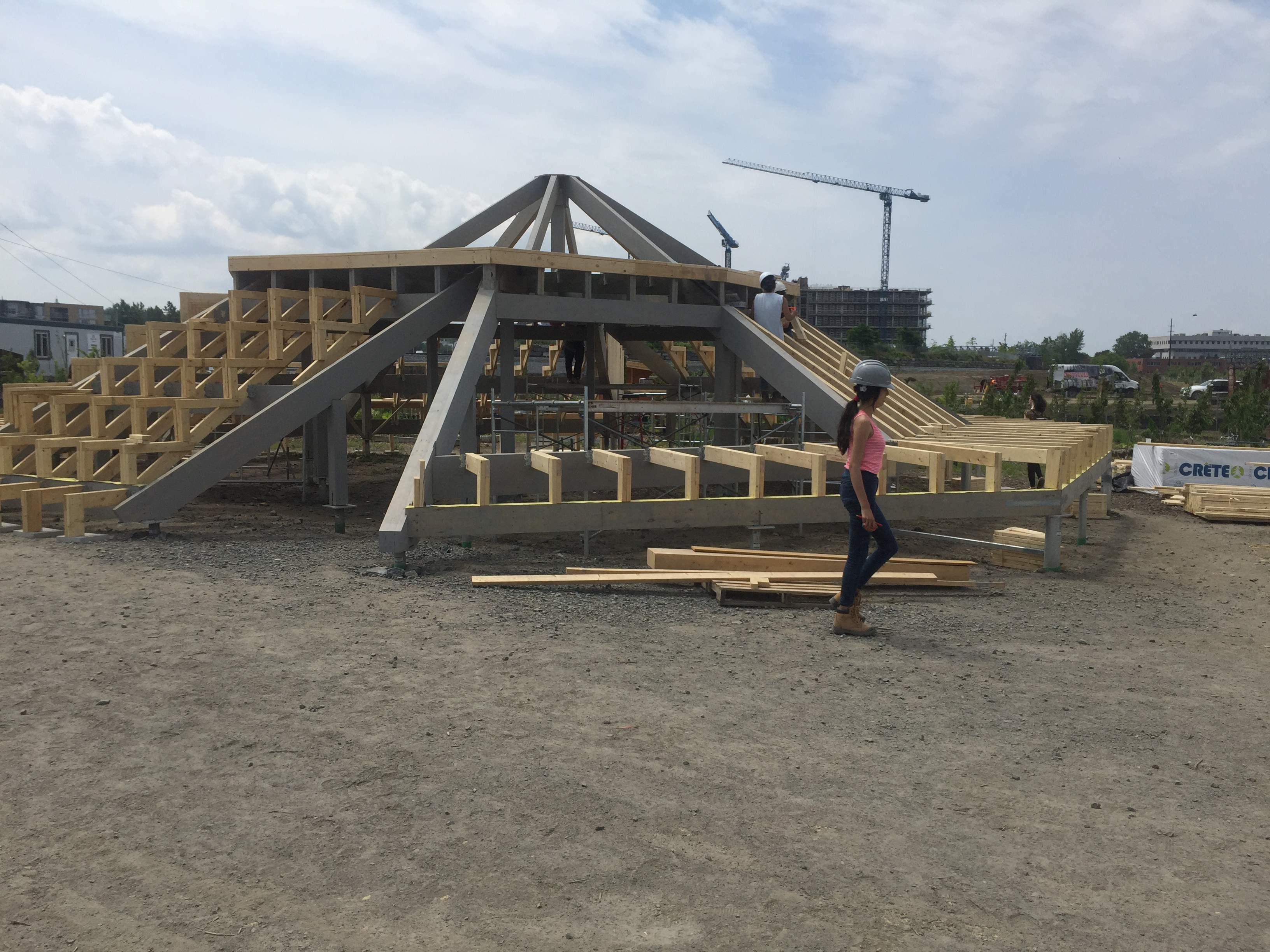 «Quand on vient à Montréal, la première chose qu’on entend c’est ‘on va à la montagne’. C’est un élément super important dans la ville et symboliquement chargé», évoque l’un des artisans de l’œuvre, Alexander Römer, un charpentier et architecte originaire de Berlin.
