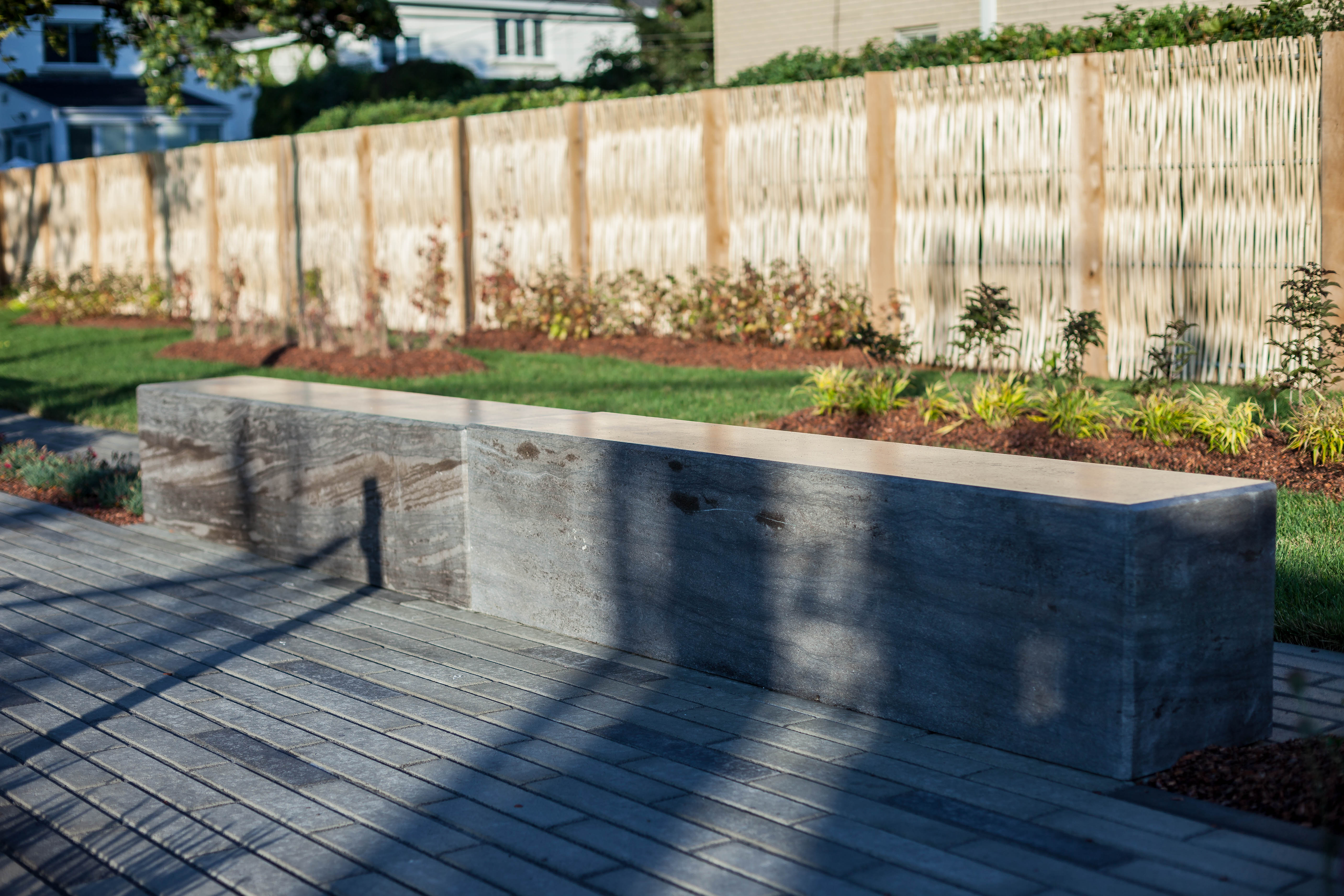 Dix bancs en calcaire de Saint-Marc-des-Carrières ont également été installés dans le parc. Ce type de pierre grise à l’allure moderne est présent dans la région de Québec où elle compose plusieurs édifices tels que l’hôtel du Parlement et certaines sections du Château Frontenac.