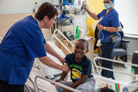 Les infirmières portent des chapeaux, mettent de la musique de Noël et décorent leur poste de travail. La veille, le père Noël rend visite aux jeunes patients.