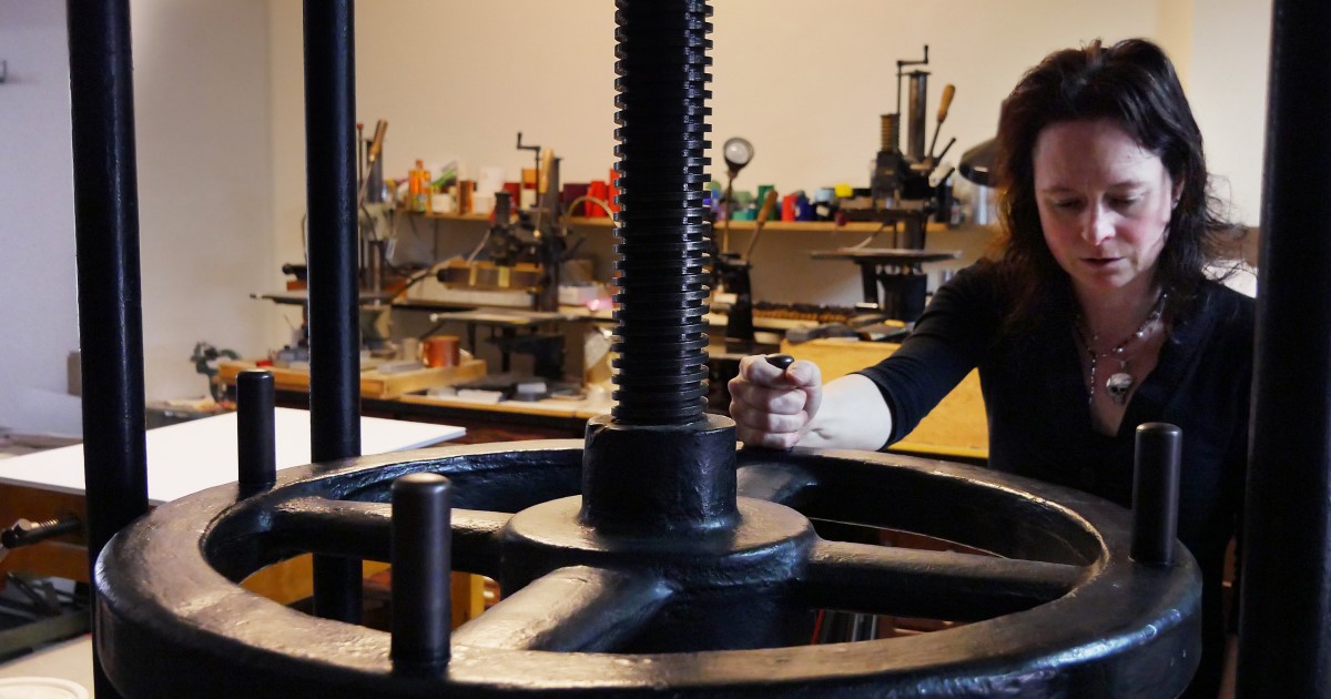 Cette dernière est entrée dans le monde de la reliure par hasard. Diplômée en tant que technicienne en médecine nucléaire, elle commence à suivre des cours de reliure et, de fil en aiguille, acquiert les connaissances nécessaires pour pratiquer cet artisanat à temps plein.