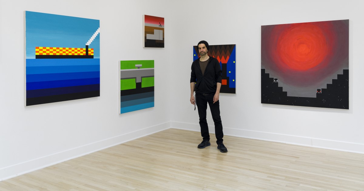 Avec leurs couleurs vives, il est impossible de passer à côté des œuvres de l’artiste visuel Oli Sorenson. Dans sa dernière exposition Panorama de l’anthropocène, qui se déroule jusqu’au 21 novembre à la Maison de la culture de Côte-des-Neiges–Notre-Dame-de-Grâce, il explore les thèmes reliés à l’activité humaine, qui tournent autour de l’industrie et les nouvelles technologies.