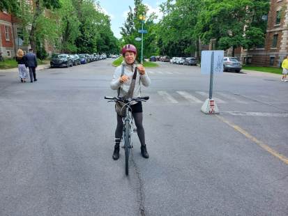 Geneviève Robert, une enseignante à l’école Guy-Drummond, habite dans Villeray, juste à côté. Elle va travailler en bicyclette tous les jours. Et même la fin de semaine, elle se déplace à vélo. Métro l’a rencontrée samedi sur le tronçon piéton de Bernard en train de rouler. «Je déroge à la règle», s’empresse-t-elle de nous dire.