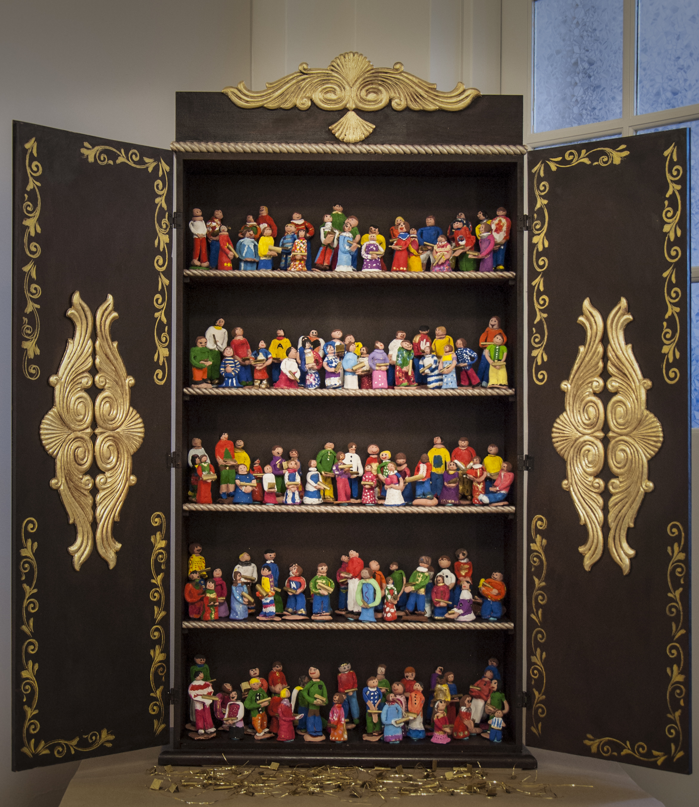 Des élèves 6e année du primaire ont fabriqué le retable et des personnages à la main avec l’aide de Véronique Nazair-Blanc, professeure d’arts plastiques. «Nous voulions produire une oeuvre sans aucune connotation religieuse et qui représenterait à la fois l’ensemble des élèves provenant de divers horizons», explique-t-elle.