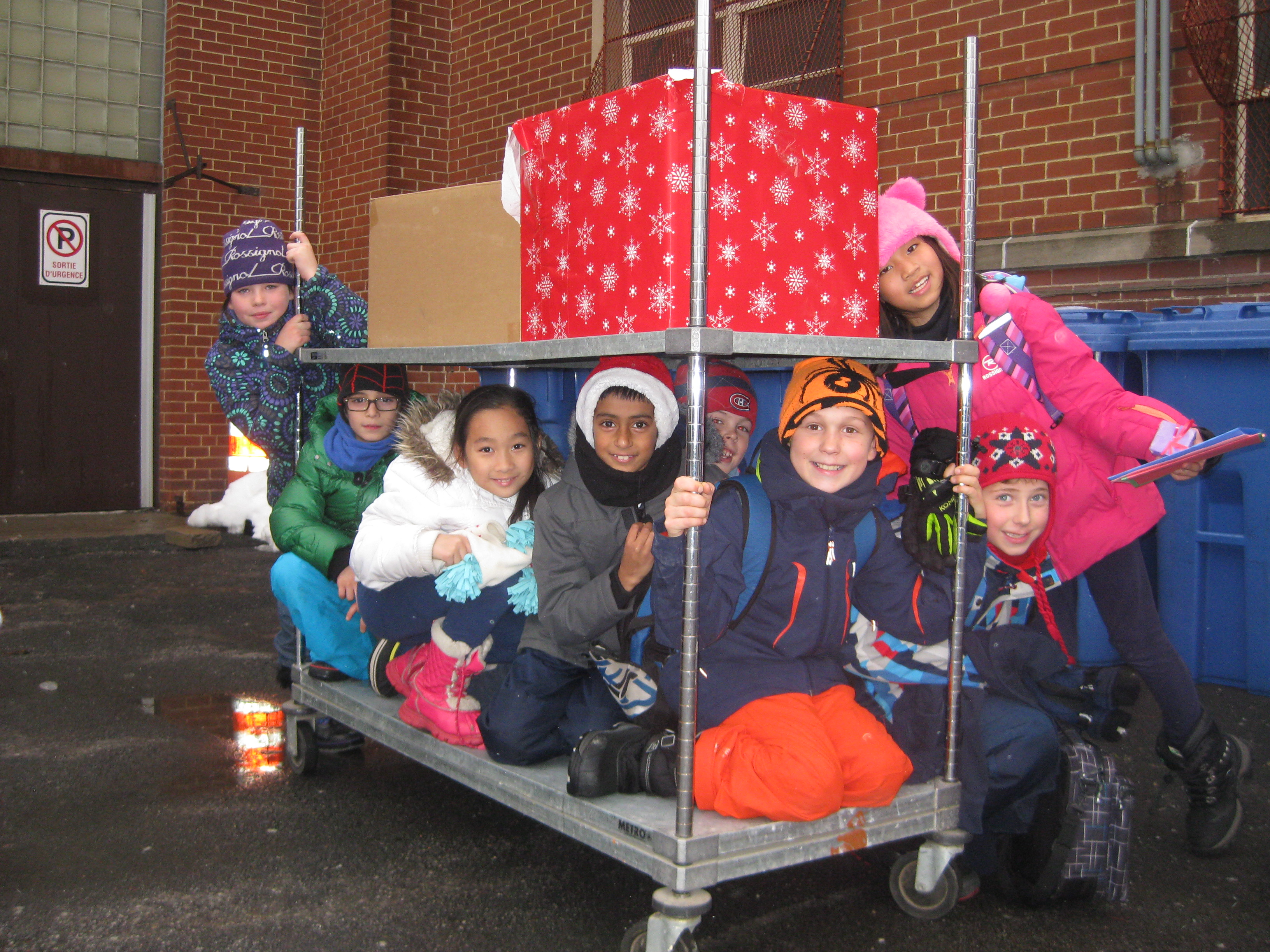 Des aliments, des livres, des jouets, des vêtements, des produits hygiéniques ainsi qu’un matelas et un futon ont été remis aux familles. Les autres élèves de l’école ont aussi participé à une collecte de dons non-périssables. Au moins un panier de Noël a été préparé par classe. Le tout a été remis à la banque alimentaire Multi-Caf.