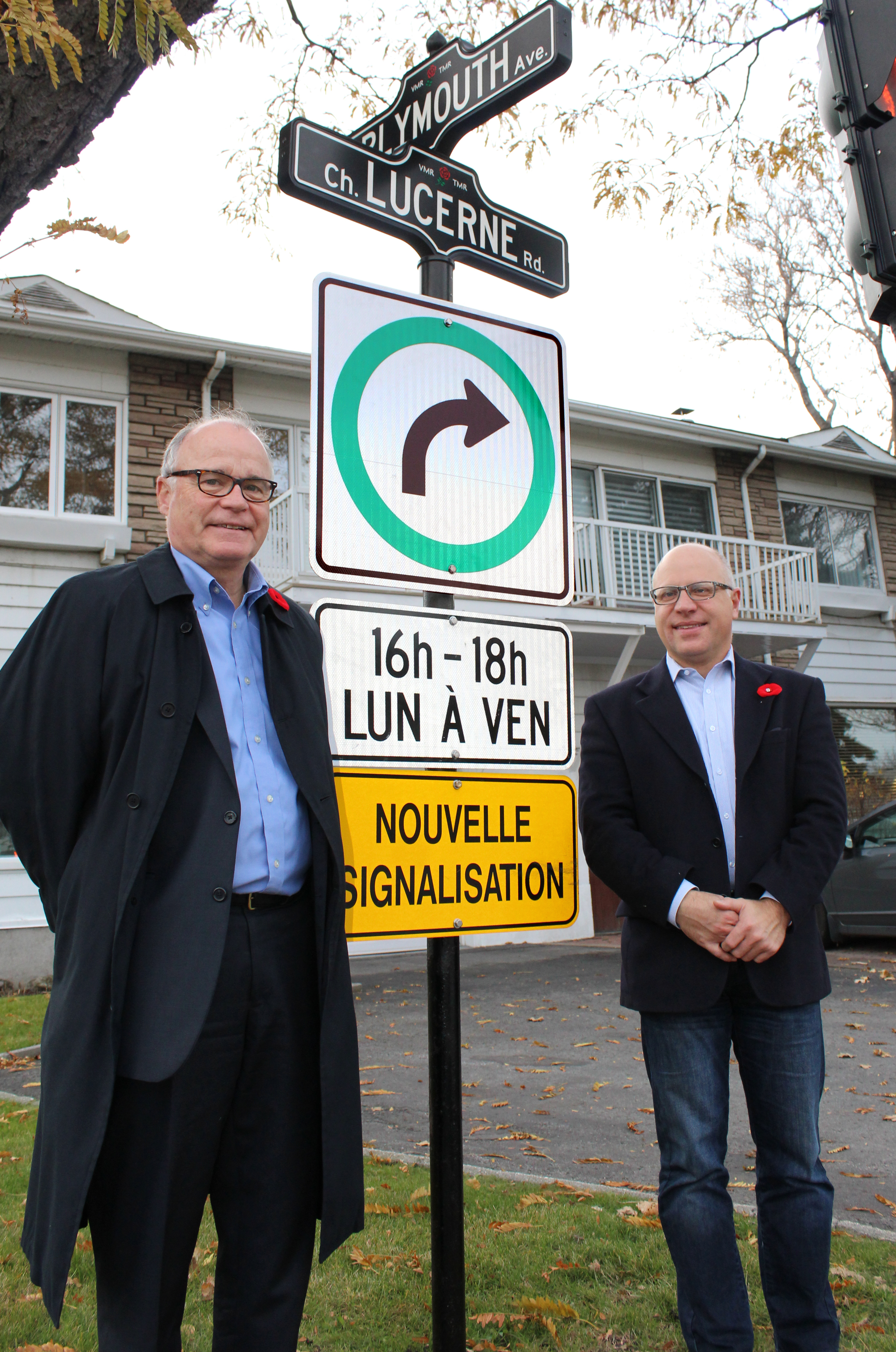 Pour atténuer la circulation, un marquage de la chaussée réduit désormais le nombre de voies à une seule sur l’avenue Plymouth en direction est, à l’approche du chemin Lucerne. Les virages à gauche sur le chemin Lucerne sont dorénavant interdits, entre 16 et 18h, aux intersections des avenues Plymouth et Johnson.
