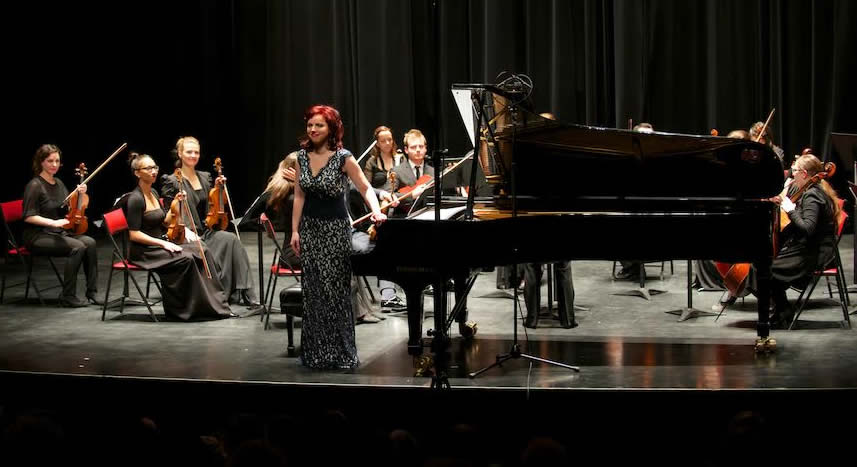 Sur scène, Mme Musial (piano) sera accompagnée de Katelyn Clark (clavecin), Elinor Frey (violoncelle) et de l’Orchestre de l’Université de Montréal, dirigé tour à tour par Lori Antounian, Nadège Frances Foofat et Véronique Lussier.
