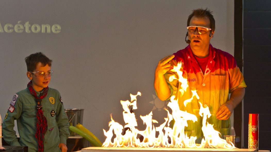Créateur d’expériences pour le magazine Les Débrouillards, Yannick Bergeron enseigne également les sciences et la chimie au collège Saint-Jean-Vianney depuis 17 ans. Un costume que ce spécialiste des spectacles délurés, mêlant explosions et glaces chimiques, n’entend pas quitter.