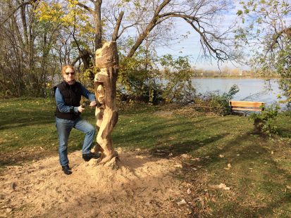 Depuis la fin du mois d’octobre, Pascale Archambault ne lâche plus ses ciseaux à bois, sa scie mécanique, sa gouge et sa masse. Installée au bord de la rivière des Prairies, elle s’affaire à redonner vie à deux arbres malades, voués à être abattus.