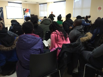 Il est mercredi soir, début février. Alors qu’il fait un froid glacial à l’extérieur, plus de 60 adolescents sont entassés dans la salle du Centre Communautaire de Rivière-des-Prairies pour écouter attentivement un policier. Normand Séguin, agent communautaire du Poste de quartier 45, est venu leur parler sans détour d’un phénomène grandissant.