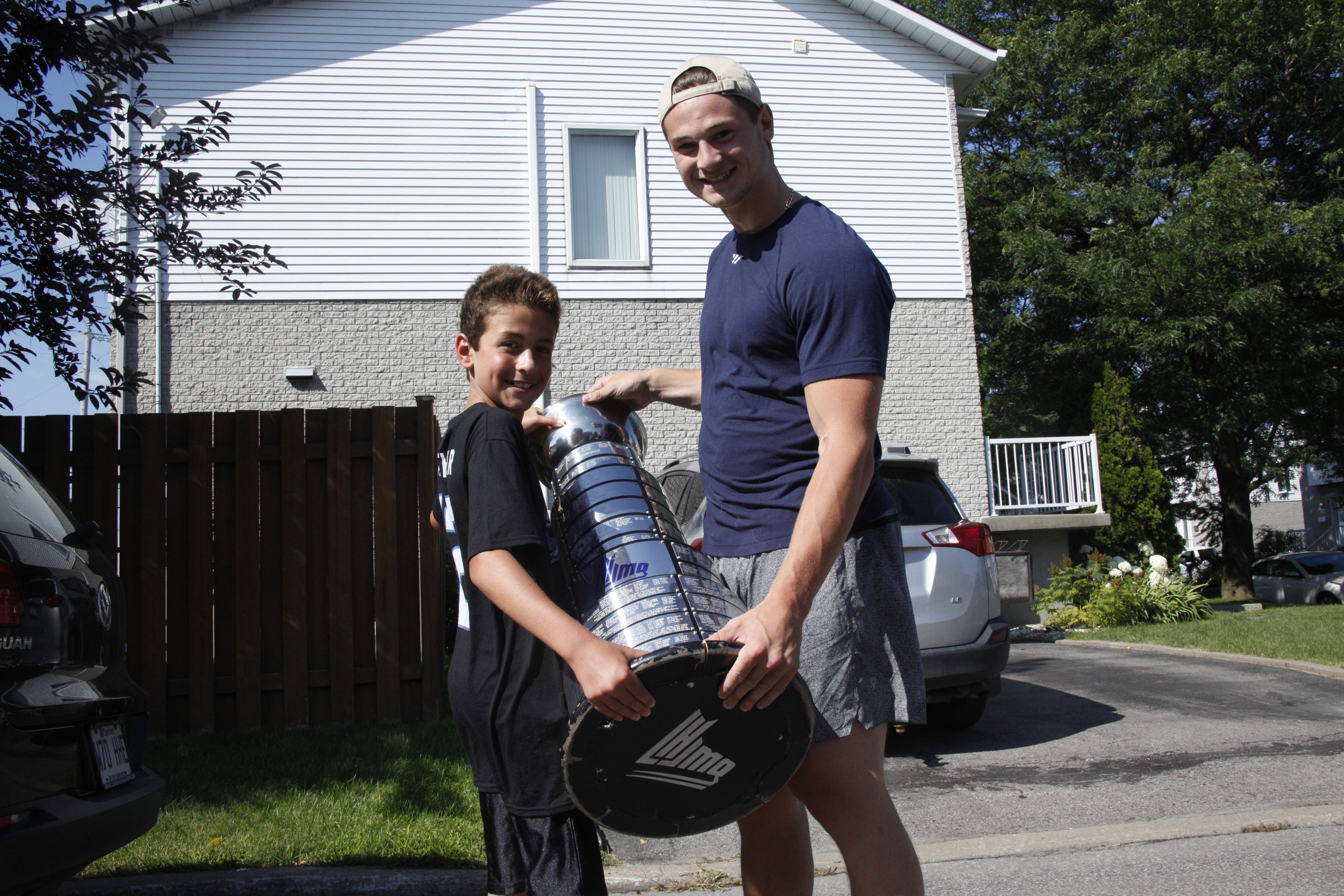 Le joueur de hockey pointelier a triomphé en LHJMQ avec les Sea Dogs de Saint John cette saison. Il est venu présenter la coupe dans l’arrondissement et a tenu à rendre visite à Danyk Sauvé, un jeune garçon qui combat une tumeur au cerveau.