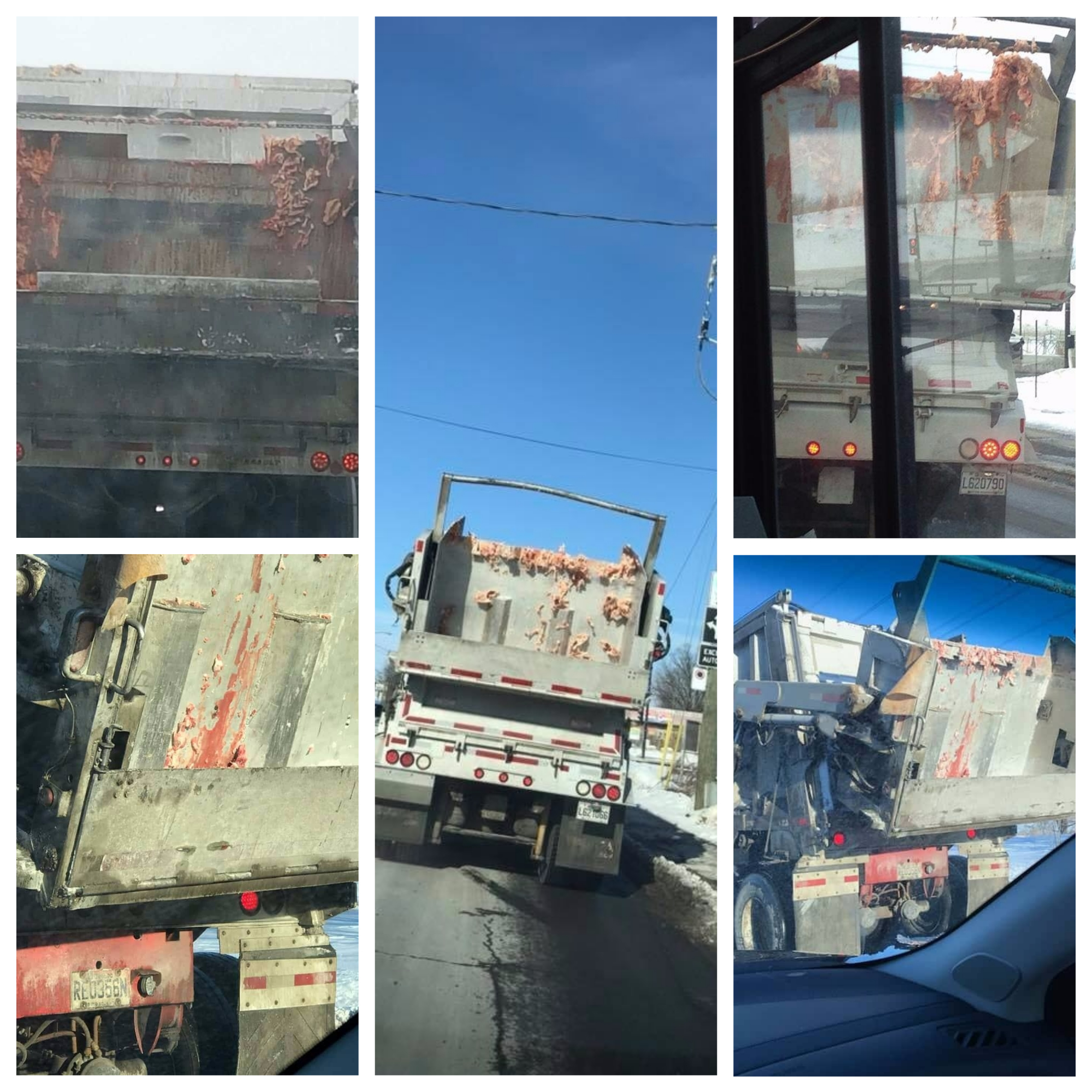 Des citoyens de Rivière-des-Prairies sont révoltés après que des camions ont été pris en photo en train de transporter, de façon bien visible, ce qui ressemble à des sous-produits d’animaux.