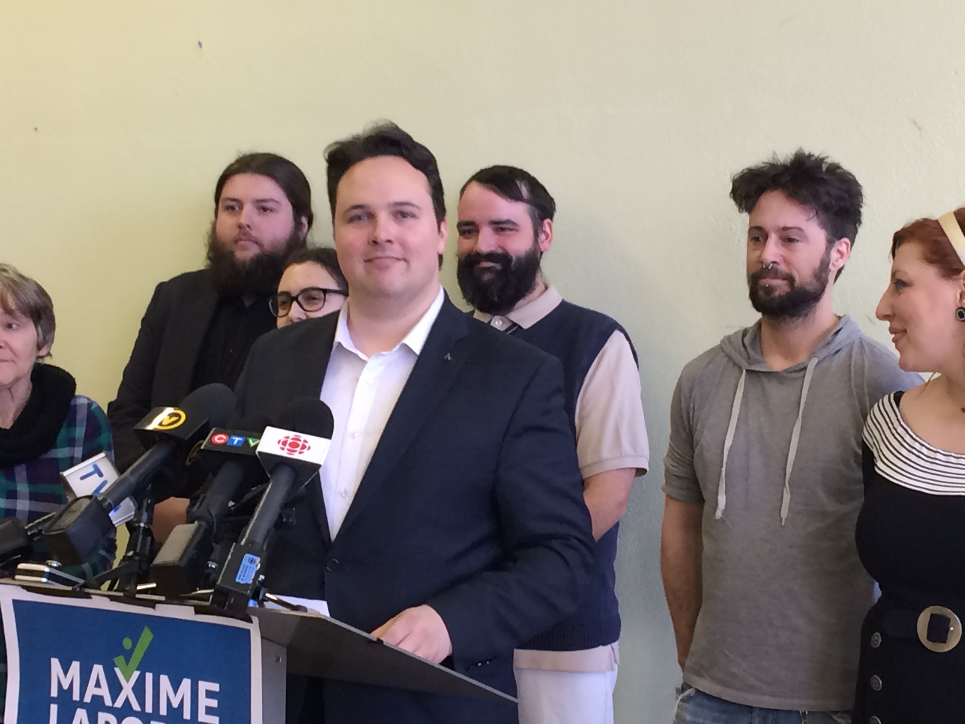 «Je ne viens pas pour perdre. Je compte bien gagner parce que j’ai des appuis extrêmement solides. Ça fait plus d’un mois que je suis sur le terrain», a déclaré mardi Maxime Laporte, entouré de militants au Centre communautaire Roussin.