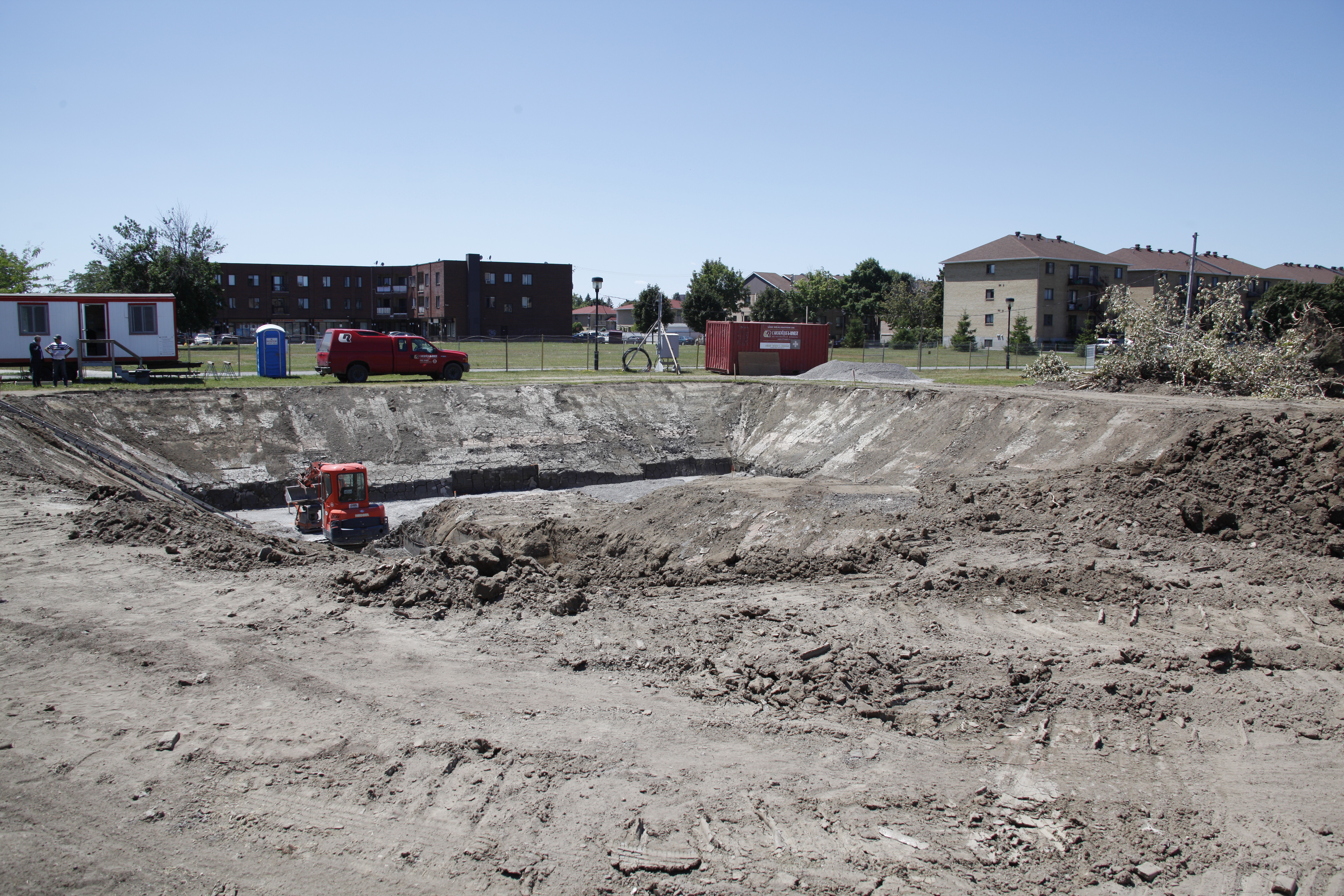 Les élus de l’arrondissement de Rivière-des-Prairies–Pointe-aux-Trembles ont lancé les travaux de construction du chalet de baigneurs et d’implantation du bassin olympique au parc Hans-Selye.