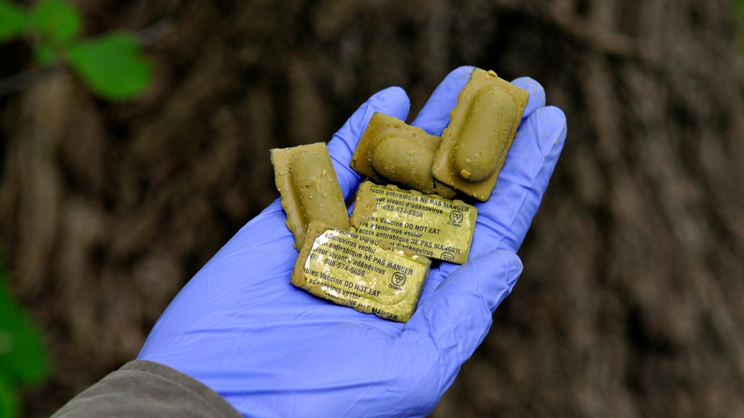 Des appâts vaccinaux, aux allures d’une olive verdâtre emballée individuellement, seront déposés manuellement près des boisés, des berges et des abords des poubelles. Ils dégagent une odeur de vanille afin d’attiser l’appétit des espèces visées.