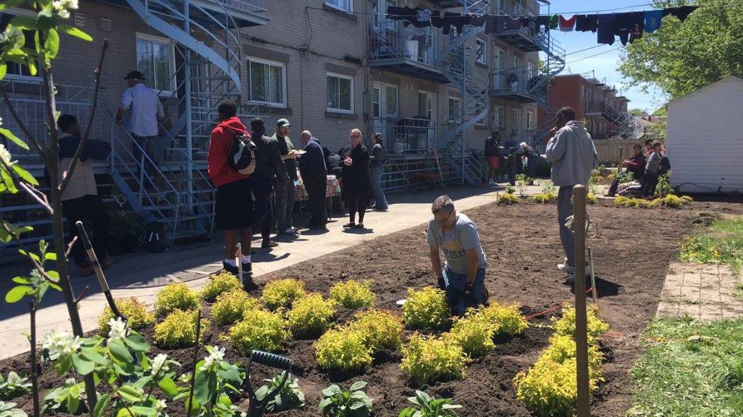 ILEAU intervient dans les secteurs d'Anjou, Saint-Léonard, Mercier – Hochelaga-Maisonneuve, Rivière-des-Prairies, Pointe-aux-Trembles et Montréal-Nord. Plus d’une centaine de projets ont été réalisés, dont le retrait d'asphalte à la main et le verdissement de la cour arrière de la Coopérative d’habitation Château en folie, à Montréal-Nord. Photo: Steve Caron / Métro Média