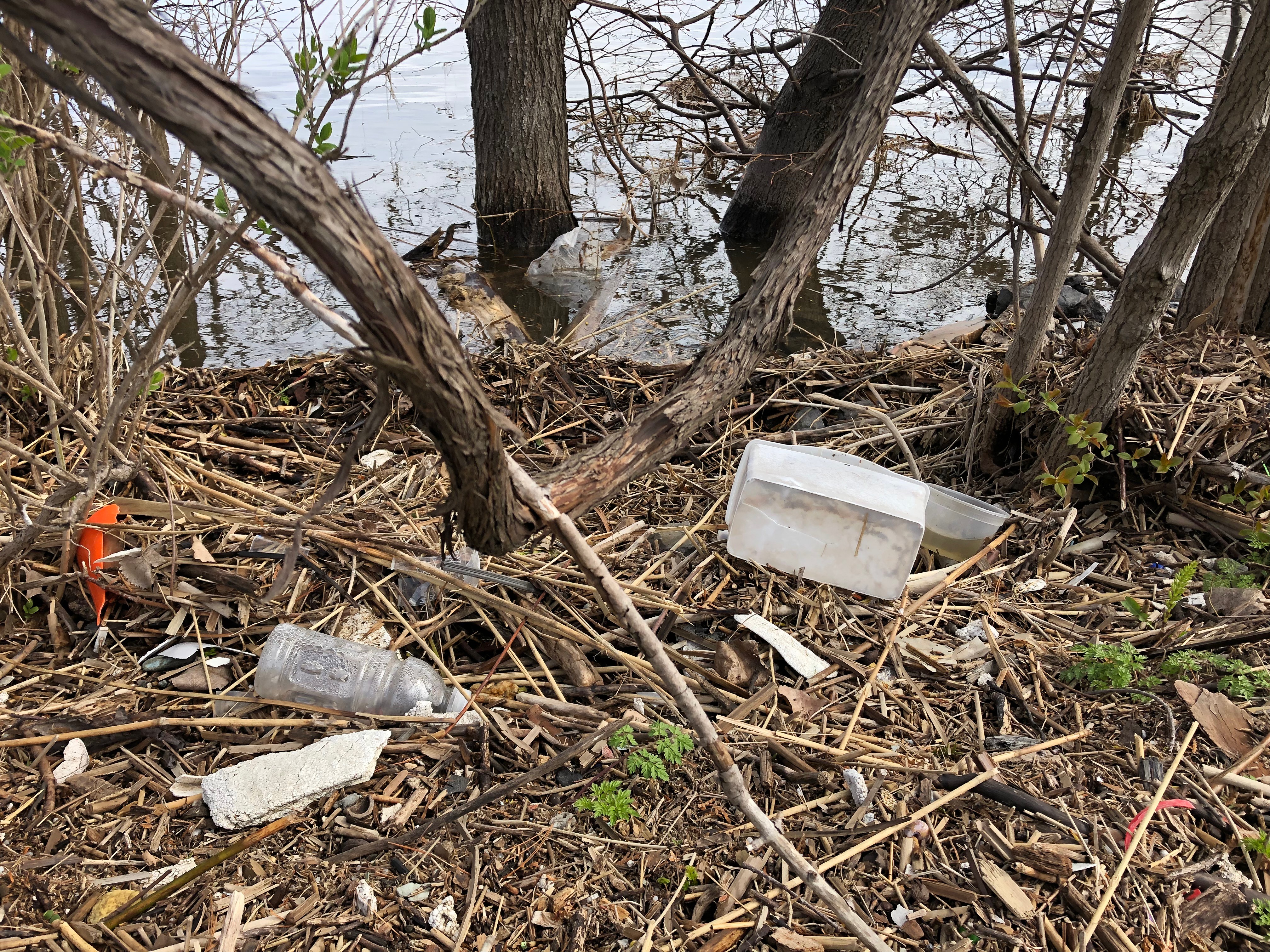 Ce qui surprend encore davantage, c’est le nombre incalculable de morceaux de styromousse, de tasses à café, de bouteilles d’eau, de bouchons et de fragments de plastique qui sont répartis partout.