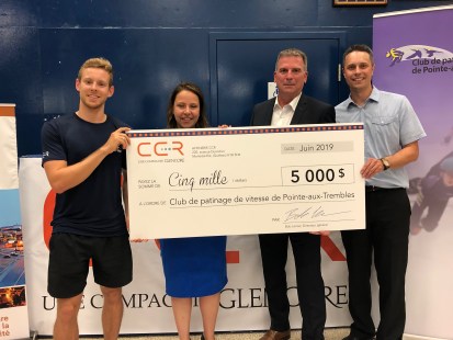 L’affinerie CCR et le patineur de vitesse pointelier Pascal Dion s’associent afin de verser 5000$ au Club de patinage de vitesse de Pointe-aux-Trembles (CPVPAT), où l’olympien a donné ses premiers coups de patin.