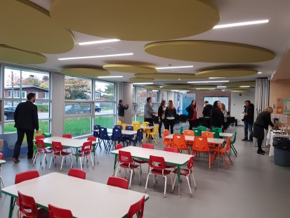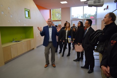 Une occasion de procéder à une visite guidée par l’architecte du projet, Patric Sabourin, du cabinet TLA. Financé à hauteur de 7,1M$ par le ministère de l’Éducation et de l’Enseignement supérieur, l’agrandissement comprend un nouveau gymnase, trois classes de maternelle, une bibliothèque, une salle polyvalente et un toit végétalisé pour la mise en place d’un potager. La cour des élèves du préscolaire, les bureaux du personnel, la salle des enseignants ainsi que l’aménagement paysager ont aussi eu le droit à un coup de jeune.