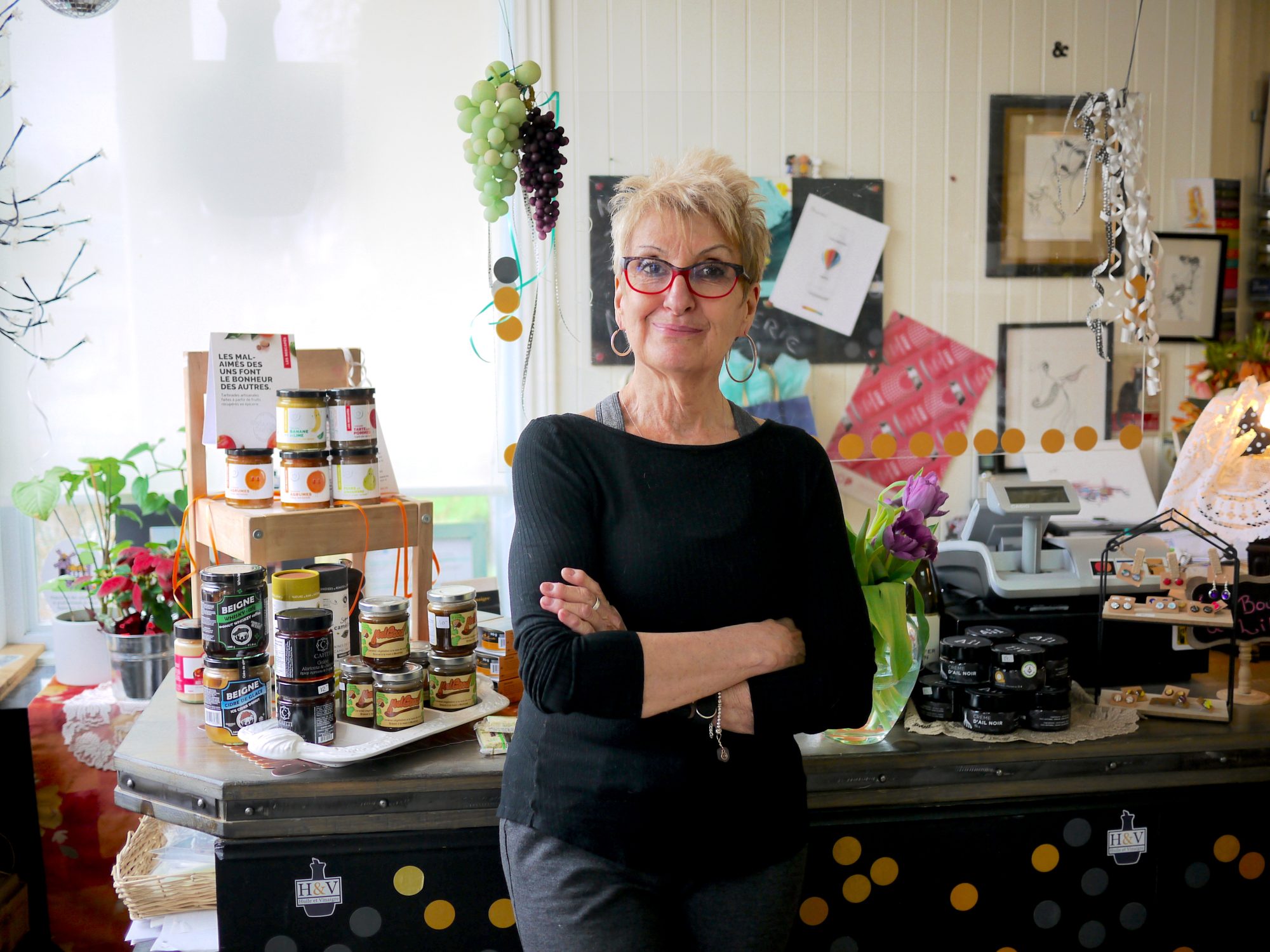Depuis 2016, la copropriétaire de l’épicerie Huile et Vinaigre est aux commandes de cette boutique spécialisée en produits fins et québécois. Le slogan du commerce, «Autour de la table, le bonheur», donne le ton chaleureux à cette épicerie de quartier.