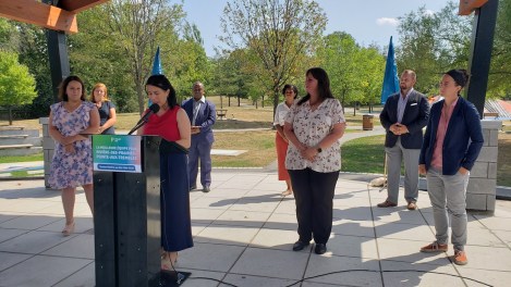 La mairesse de Montréal Valérie Plante, a présenté sous le toit de la place publique du parc Saint-Joseph de Rivière-des-Prairies son équipe pour Rivière-des-Prairies–Pointe-aux-Trembles dans le cadre des élections municipales.