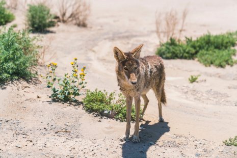 Le coyote est plus grand qu’un renard et sa taille est équivalente à celle d’un berger allemand. Contrairement au renard, son pelage est généralement gris plutôt que roux.