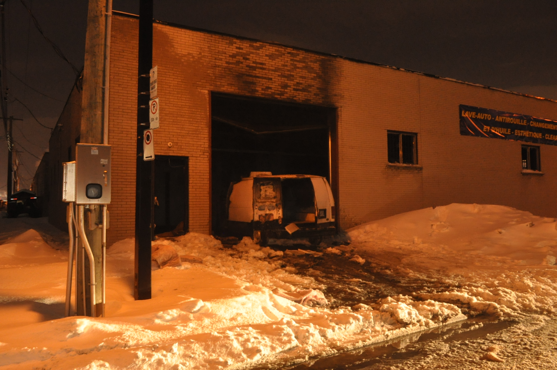 Un véhicule a explosé après avoir foncé dans un garage de mécanique automobile de la rue Arthur-Léveillé, entre la 4e Avenue et le boulevard Louis-H.-Lafontaine, mardi, vers 22h.