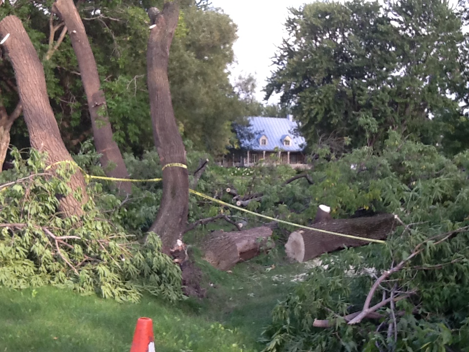 Le deuxième, qui avait aussi été identifié auparavant pour abattage, a été coupé en raison de son inclinaison dangereuse pour les citoyens qui visitent le parc.