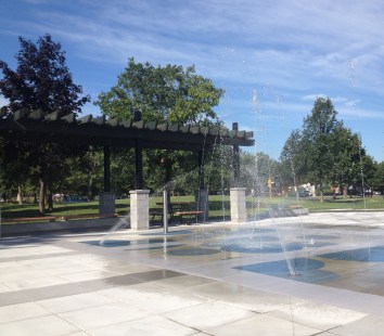 En plus d’une plaque rappelant les réalisations de Paul Déjean, on retrouve, à cette place publique, des jeux d’eau, des tables de pique-nique, ainsi qu’une pergola.