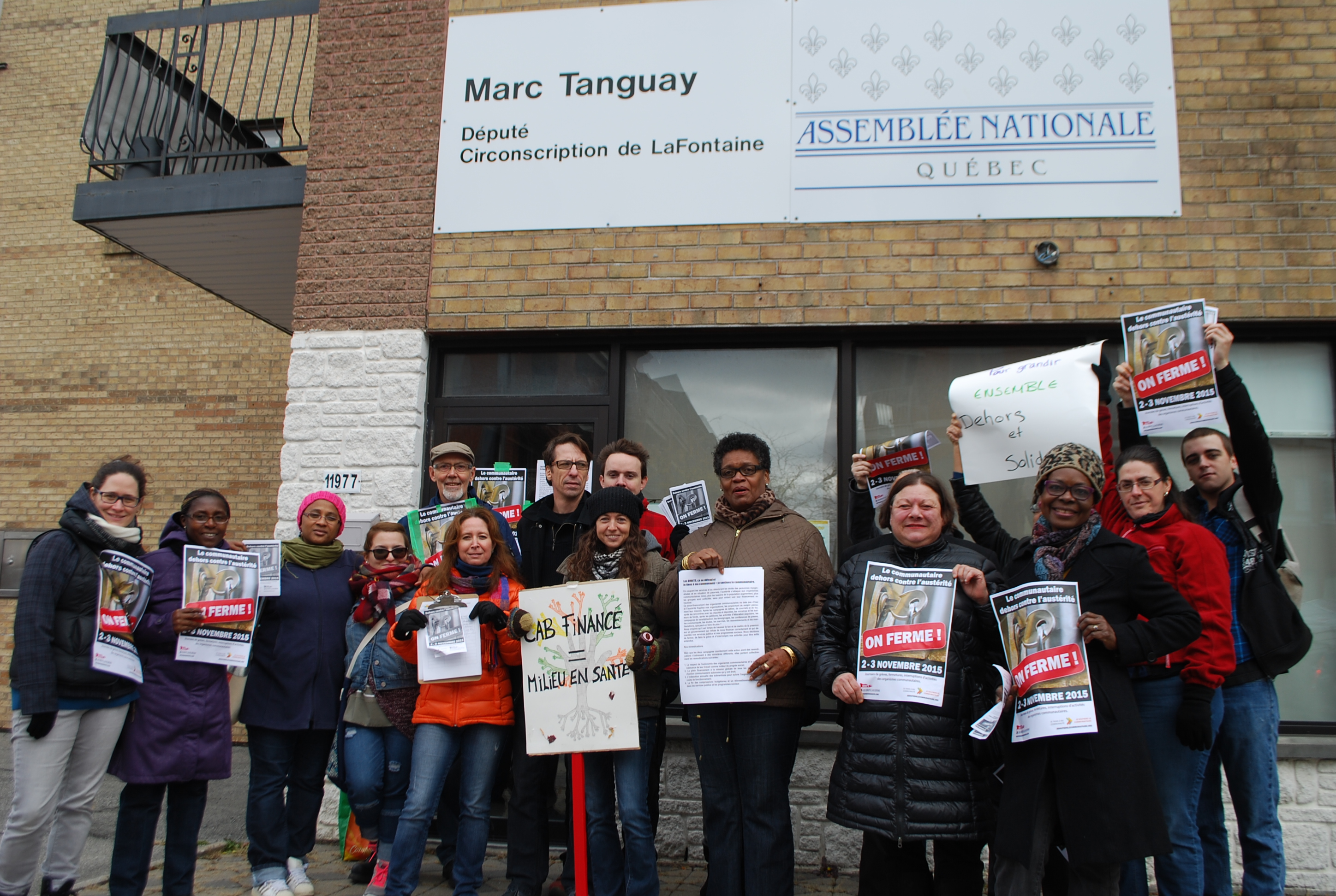 Dénonçant de nouveau les mesures d’austérité du gouvernement libéral de Philippe Couillard, une vingtaine de représentants d’organismes de Rivière-des-Prairies ont manifesté devant les bureaux du député de LaFontaine, Marc Tanguay, lundi, dans la foulée des journées de grève du communautaire des 2 et 3 novembre.