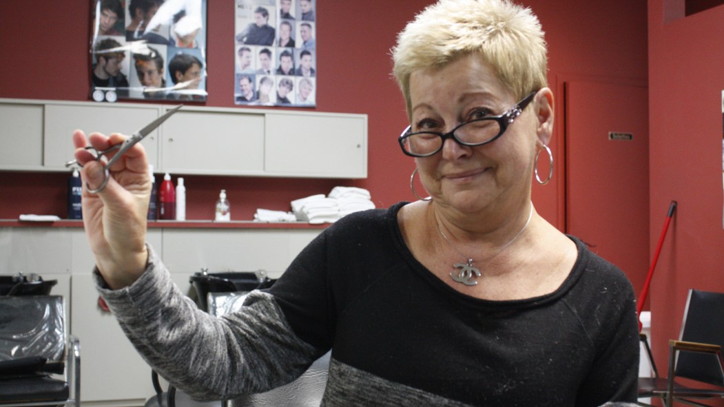 «J’ai acheté ma job, dit-elle en riant. J’ai loué une chaise à une coiffeuse pour femmes pendant quelques années, mais maintenant je suis toute seule.»