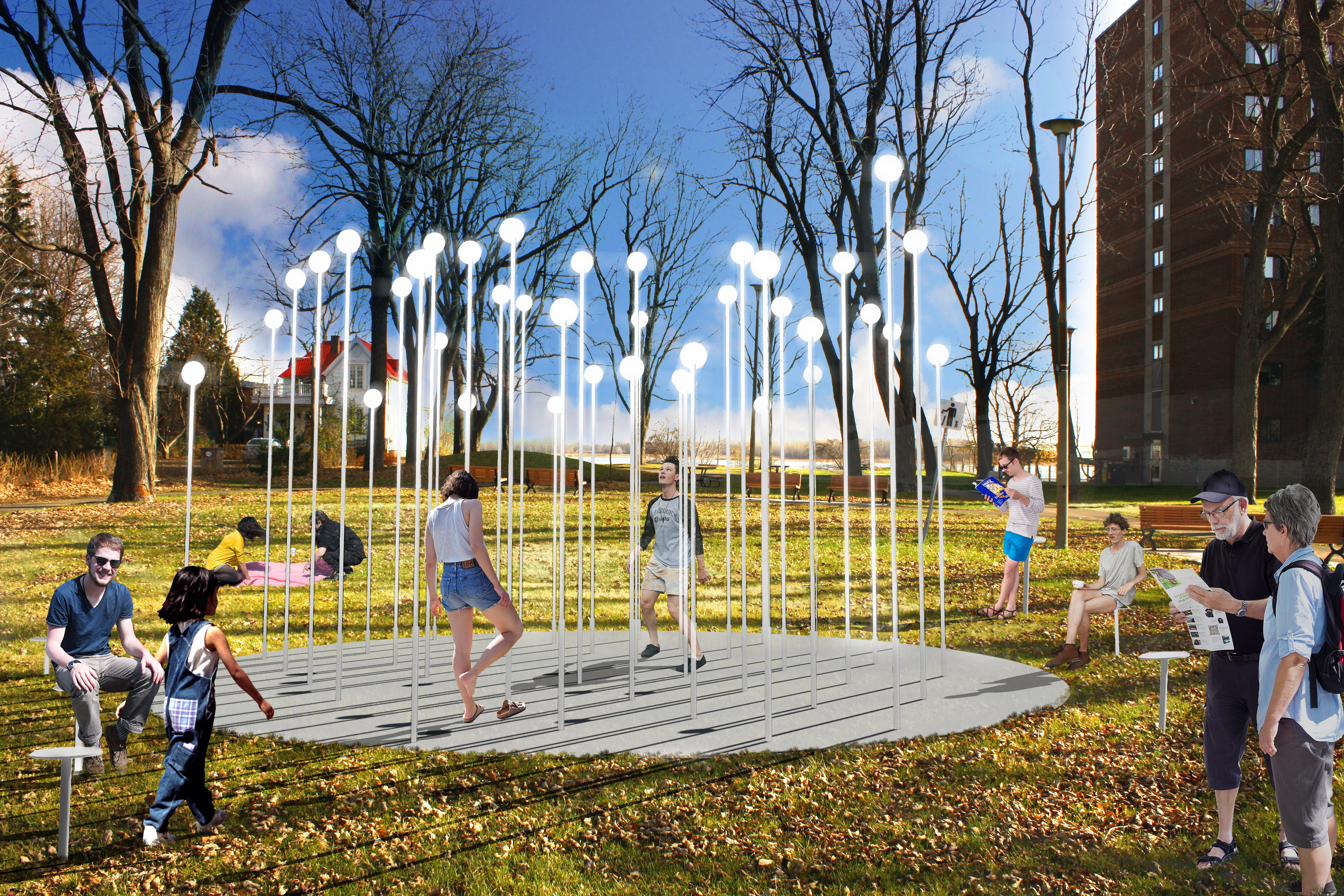 «Il y aura des tiges en métal de différentes longueurs qui seront ornementées avec des pastilles rondes, qui représenteront les feuilles. Ces feuilles prendront une couleur orangée l’automne afin de suivre la saison.»