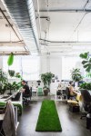 C’est toutefois à l’étage que sont installés la majorité des employés. Dans cet espace ouvert inondé de lumière naturelle, les zones de travail ont été délimitées par des plantes, des bibliothèques et des panneaux colorés.