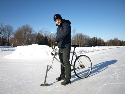 Pour certains passionnés de la bicyclette ni le froid, ni la neige ne posent obstacle à leur passe-temps, et désormais les vélos montréalais sillonnent aussi les patinoires.