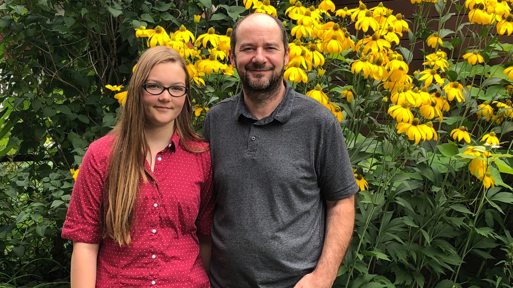 Adélie Desrosiers et son père Éric Desrosiers veulent encourager la recherche dans les nouveaux traitements contre le cancer. Photo: Emmanuel Delacour