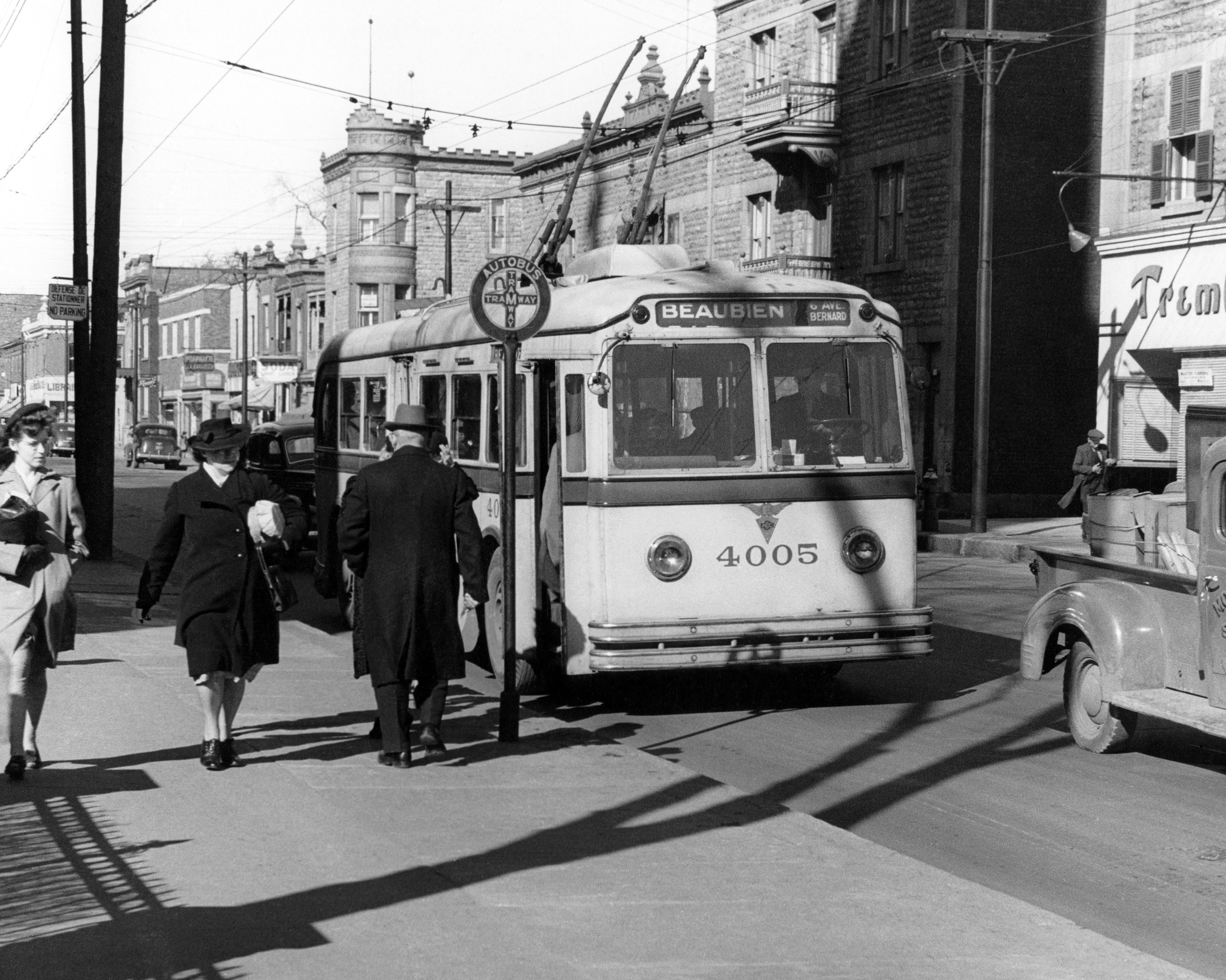 En effet, il faudra attendre l’après-guerre pour qu’en 1951 la Commission des transports de Montréal rachète la Montreal Tramways Company et offre un service municipalisé d’envergure. L’autobus devient alors roi, sa mobilité et modernité supplantant les vieux tramways, considérés comme étant démodés.