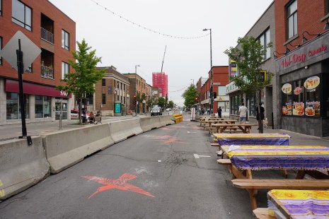 Du côté des commerçants, l’enthousiasme n’est pas non plus au rendez-vous. Certains trouvent que le projet est « une bonne idée », mais que sa réalisation a été « mal gérée. » « Là, ça arrive tard pis c’est mal présenté, on dirait des travaux et pas quelque chose de festif. […] Comme ça a été mal encadré, les restos n’en ont pas profité pour agrandir leurs terrasses » juge Marc-André, gérant du restaurant Elvita.