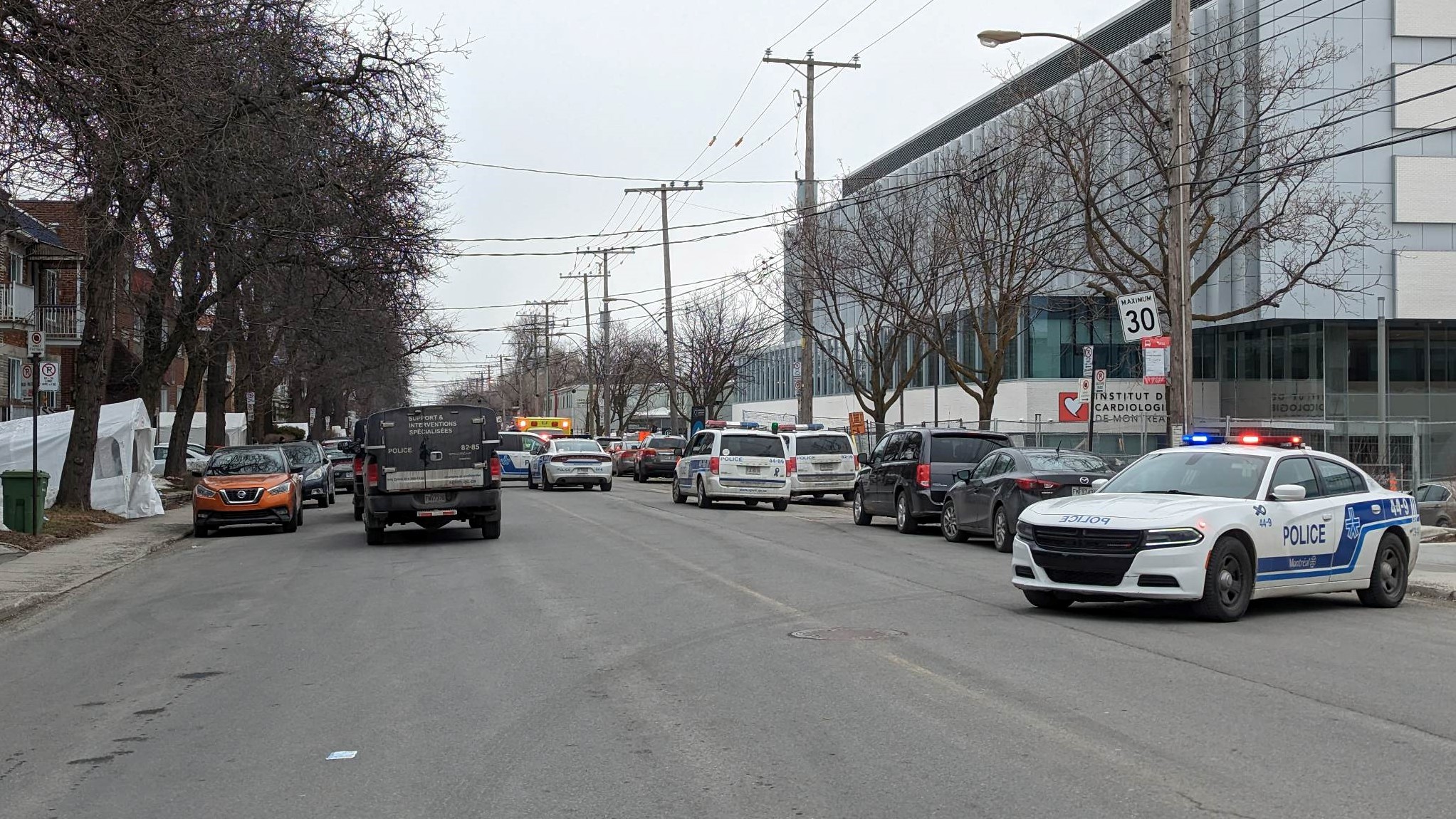 Un périmètre de sécurité est établi sur la rue Bélanger, entre la rue Viau et la 40e Avenue. Une douzaine de voitures de police ont été déployées sur place et un poste de commandement mobile a été installé.
